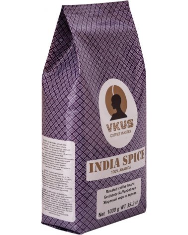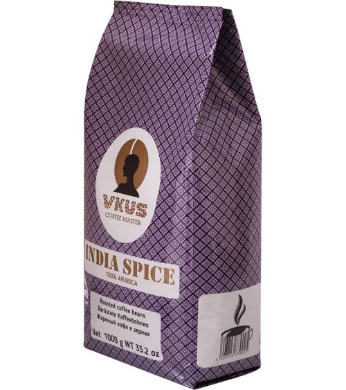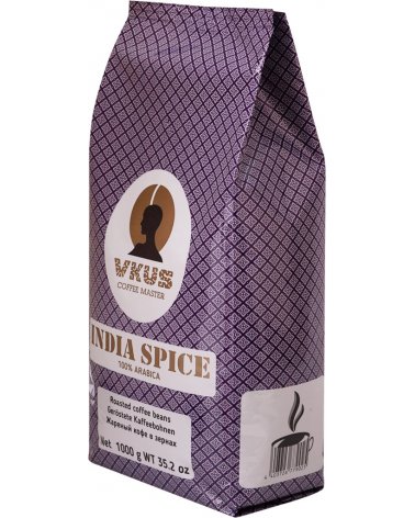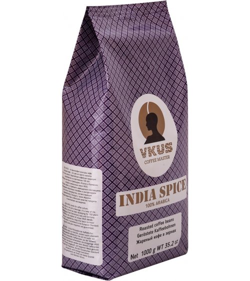 100% arabica de plantations indiennes. Goût de chocolat et de pain avec des notes de muscade